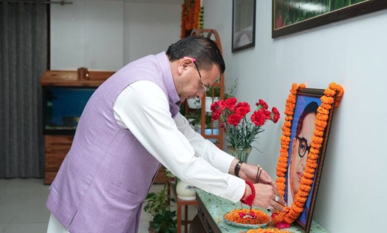 मुख्यमंत्री धामी ने भारत रत्न डॉ. भीमराव अंबेडकर के चित्र पर पुष्प अर्पित कर दी श्रद्धांजलि