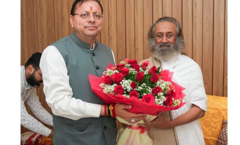 मुख्यमंत्री धामी ने श्री श्री रविशंकर से की शिष्टाचार भेंट