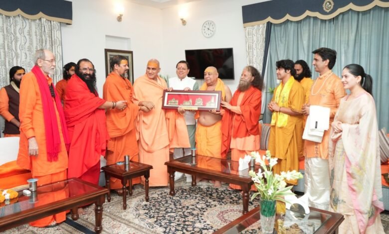मुख्यमंत्री धामी ने शासकीय आवास पर किया संत समाज के दिग्गजों का स्वागत