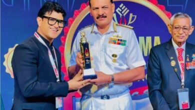नौसेना प्रमुख एडमिरल दिनेश के. त्रिपाठी ने शिक्षाविद ललित मोहन जोशी को किया सम्मानित