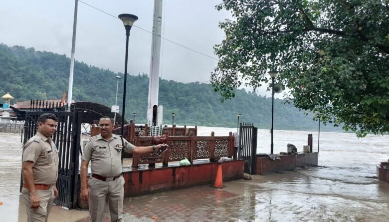 ऋषिकेश में गंगा नदी का जलस्तर खतरे के निशान से ऊपर, त्रिवेणी घाट जलमग्न